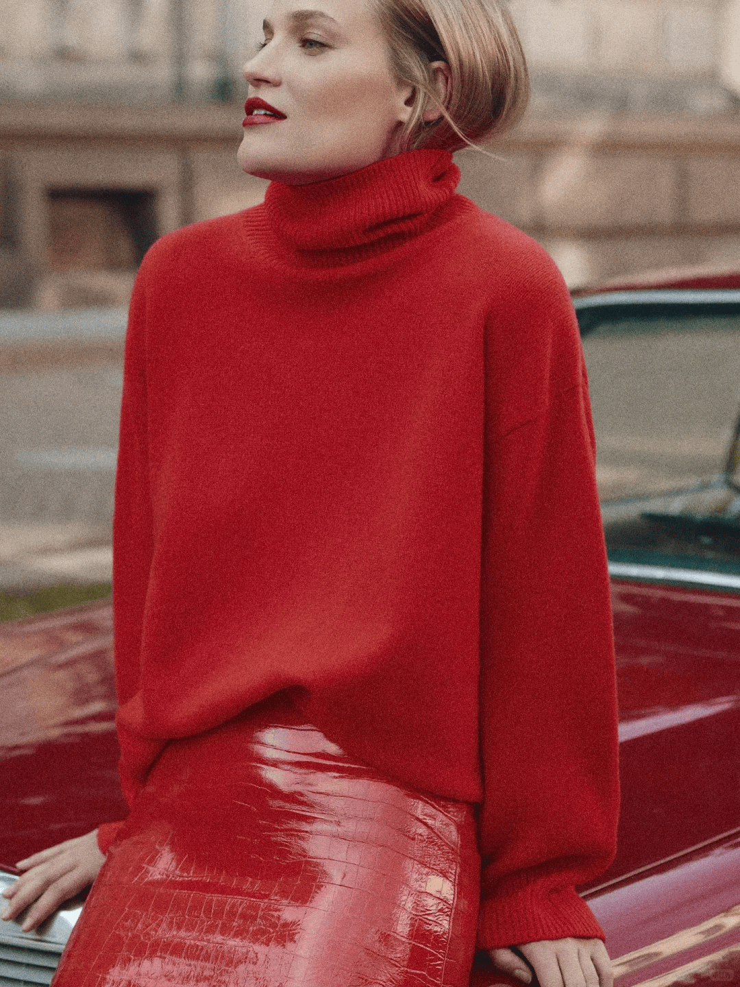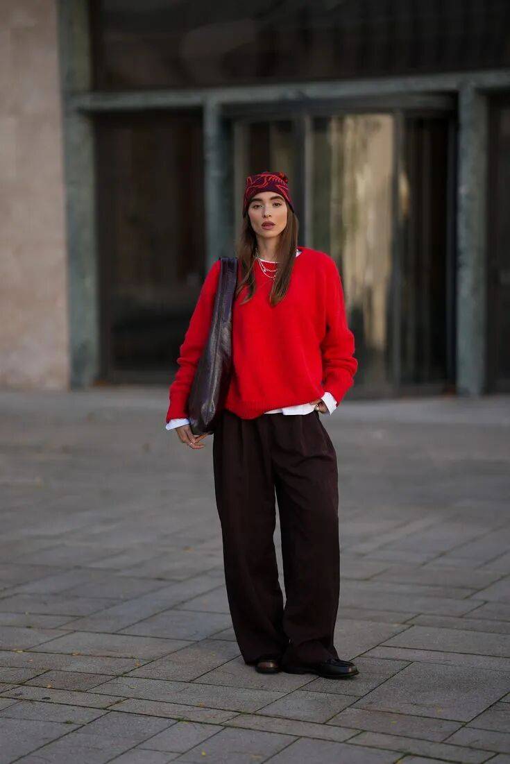 搭配高腰褲裝或半身裙,這一抹紅恰到好處地提亮整體,卻毫無壓力,它是冬日穿搭中那恰到好處的點睛之筆。