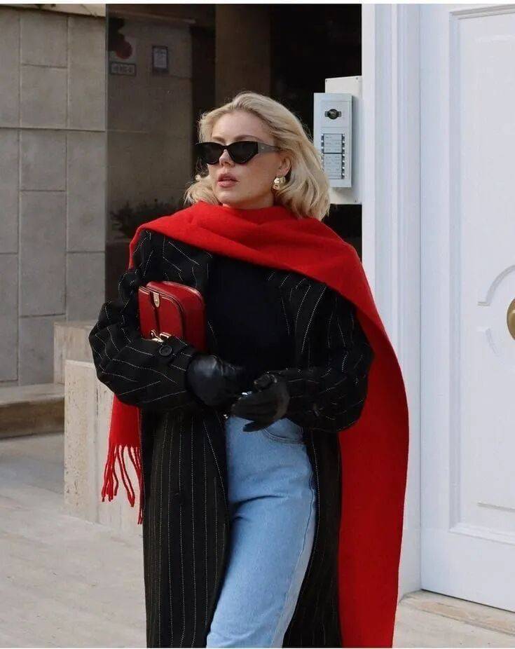 一條厚實的紅色羊絨圍巾是冬日必備。
