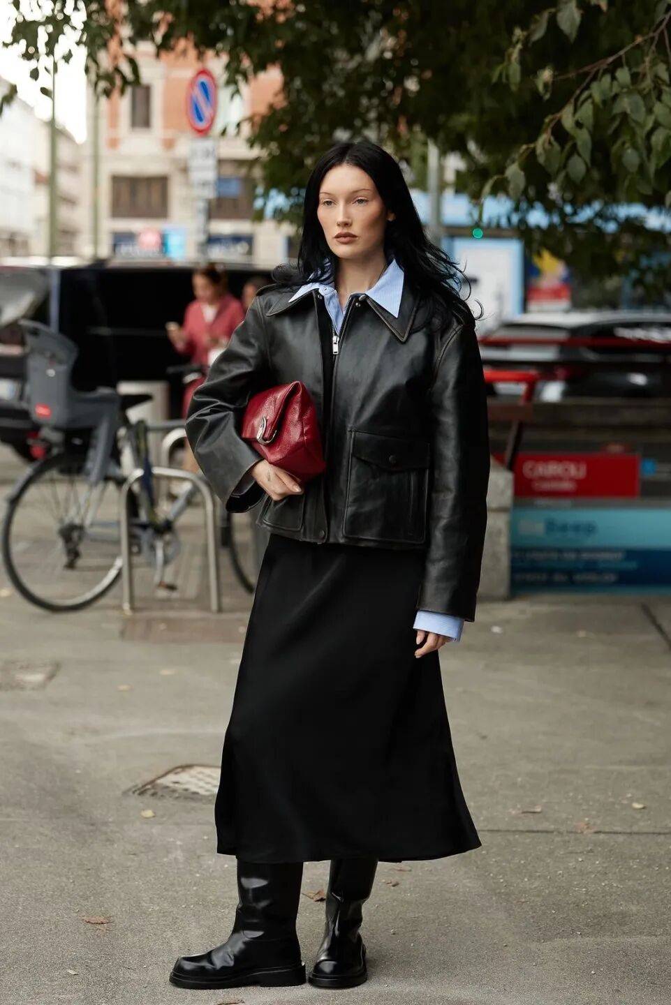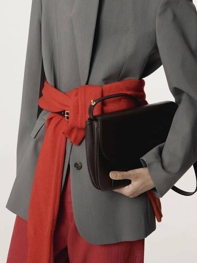 當穿著以黑白灰為主時,一隻紅色手袋能立即讓整體煥發生機。