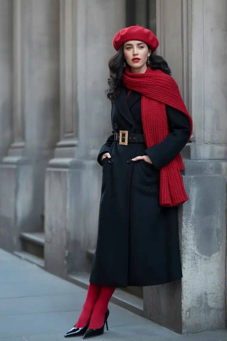 還有一頂紅色貝雷帽或針織帽,不僅保暖,更能為冬日穿搭注入恰到好處的溫暖與歡愉。