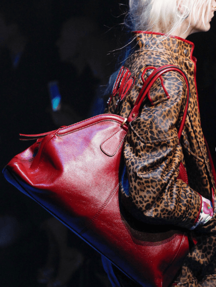 紅色在皮質配飾上會散發特別的光澤魅力,別看麵積不大,卻往往是造型搭配的焦點。