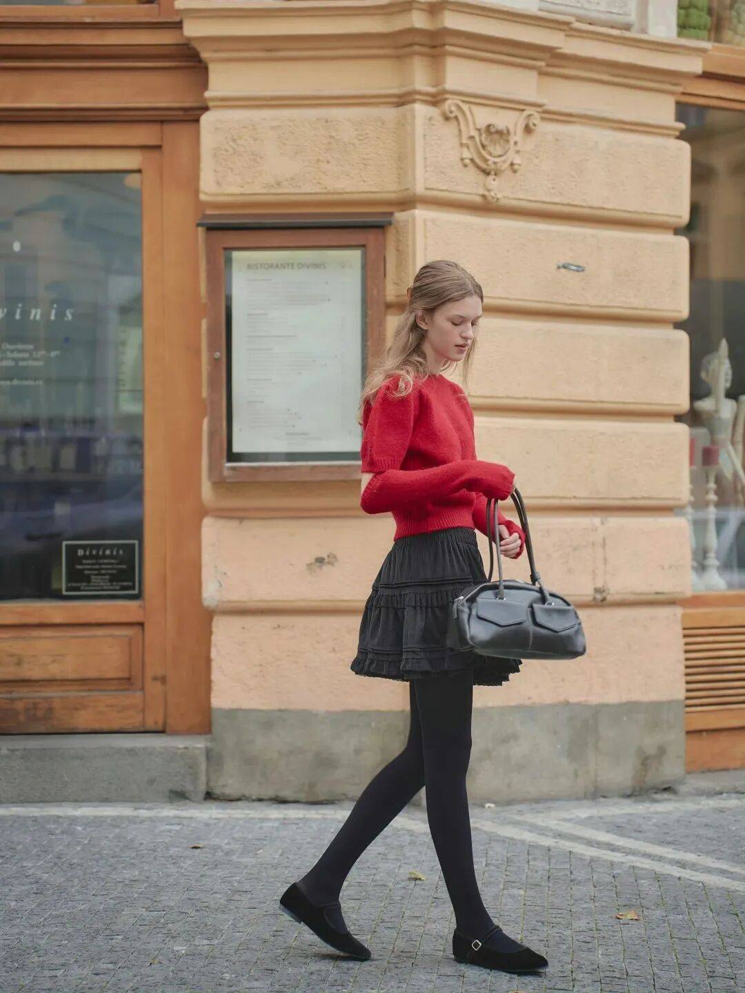 一雙紅色靴子或瑪麗珍鞋,以其獨特的複古少女氣質,為厚重的冬裝注入輕盈感。