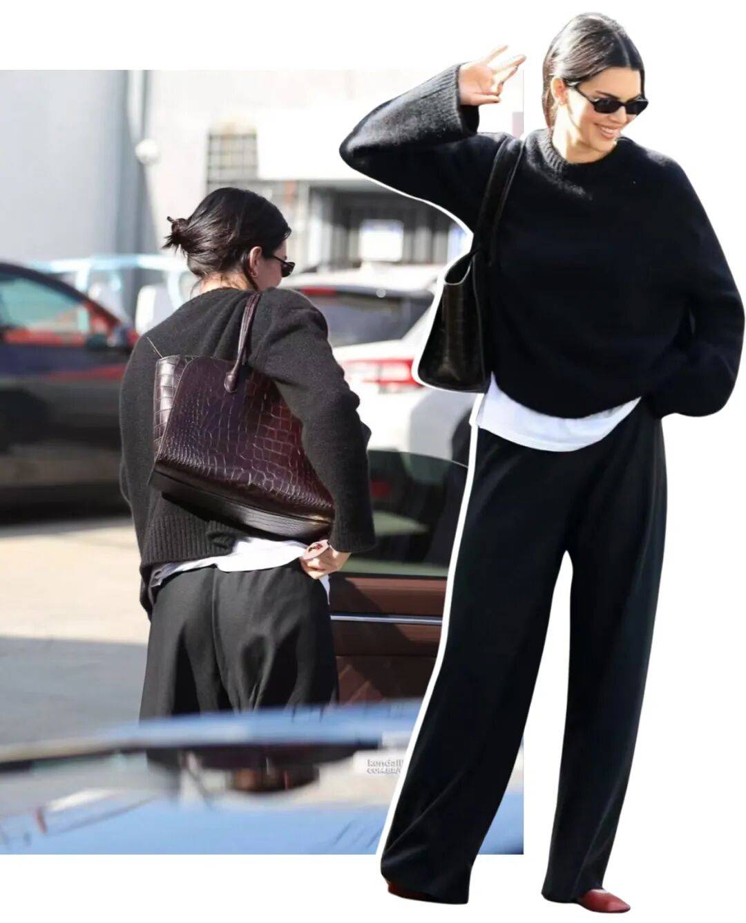 從上麵姑娘們的分享可以看出,the row是一個非常容易塑造出“人包結合”效果的品牌。而這點從超模Kendall Jenner身上更是顯示得更加淋漓盡致,大家可以看看她前幾天的出街look ▼