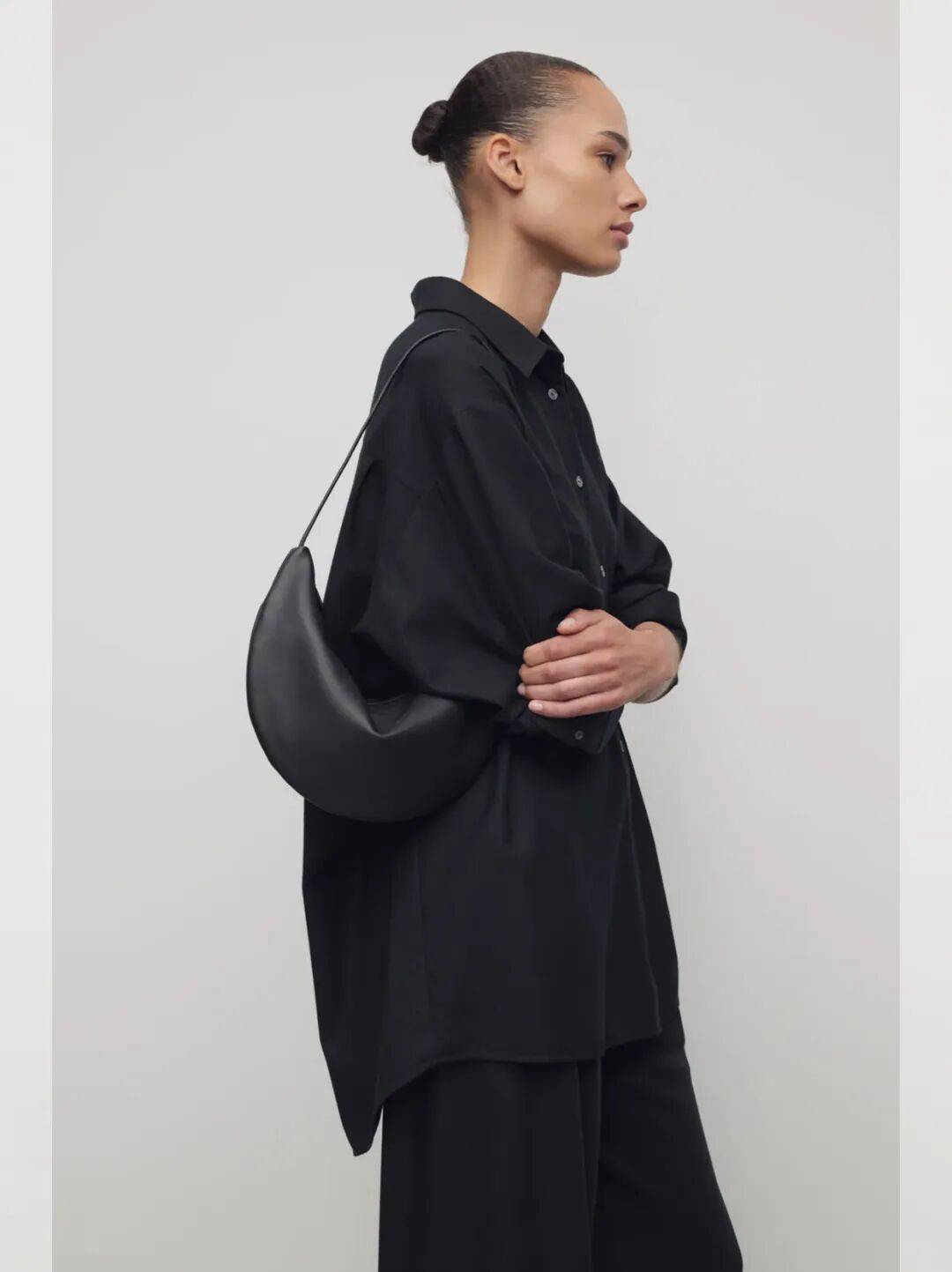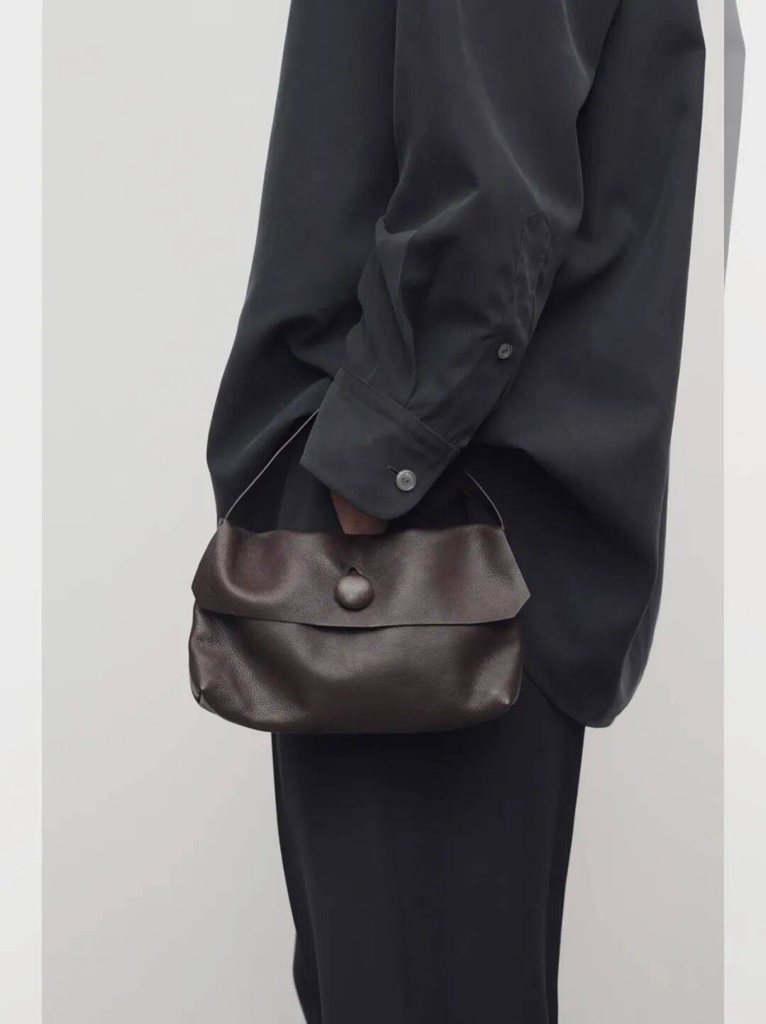 就是上麵這隻名叫Sally的包包跟她名字一樣一上市就炸了,短短時間內就有了“the row最值得購買的包”稱號。除了棕色,還有一隻黑色 ▼