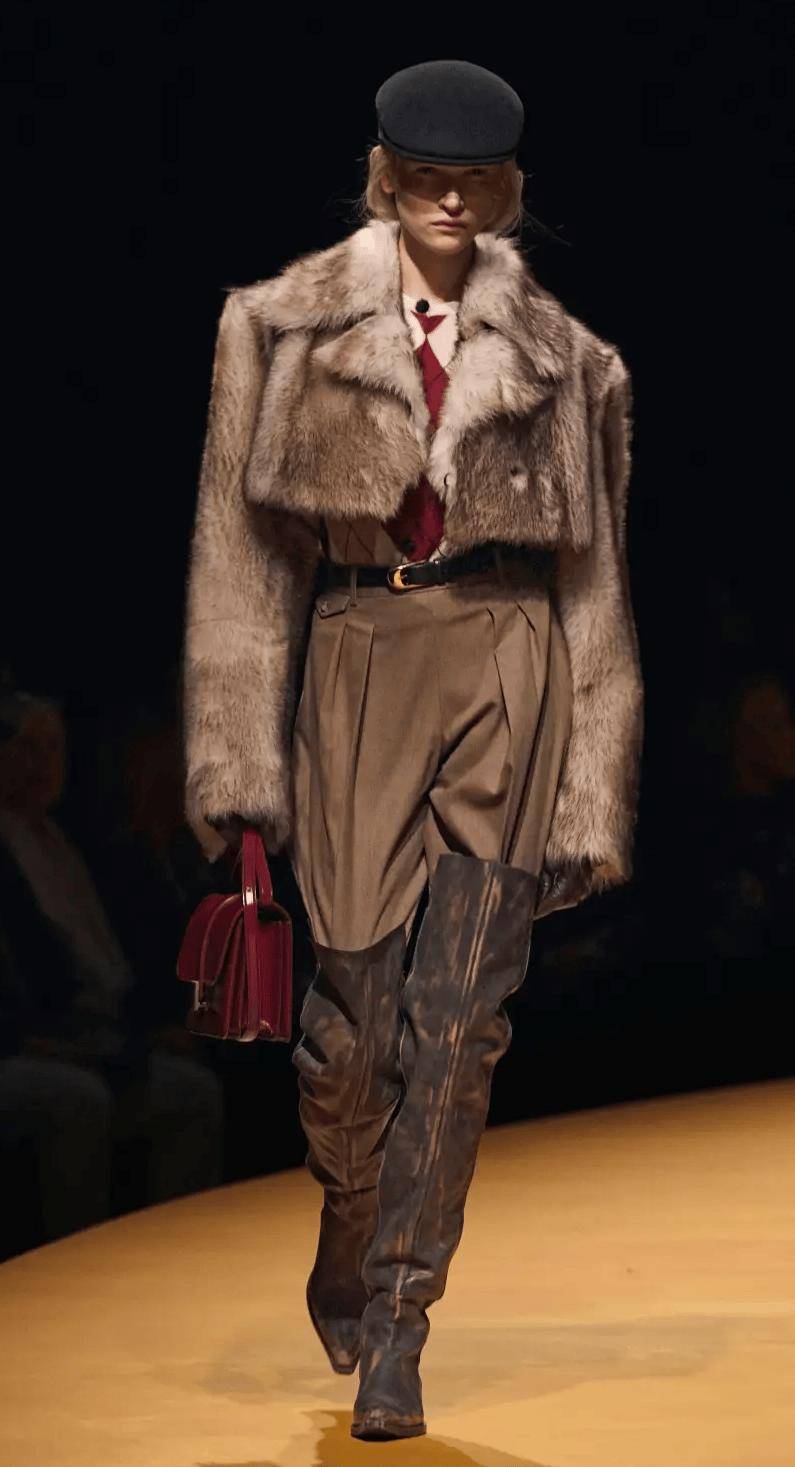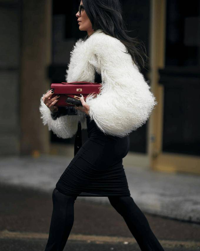 選擇剪裁利落的直筒褲或垂感闊腿褲,中和皮草的蓬鬆感,搭配尖頭靴或樂福鞋,瞬間提升氣場。