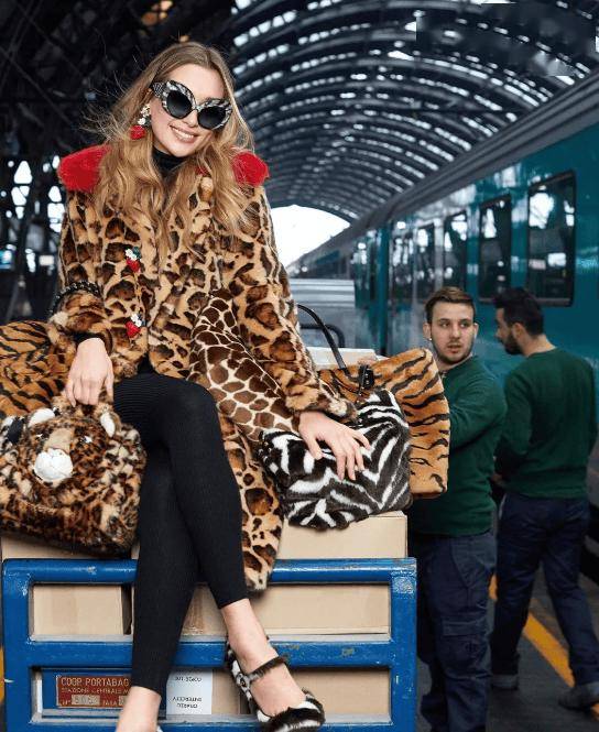 通過增加一些誇張的配飾,比如皮帶、帽子、鞋襪、尖頭鞋、以及采用上長下短的穿搭方式,並搭配絲襪。將皮草穿出帶有浪漫複古氣息的嬉皮士風格,是一種將奢華與自由不羈相結合的創意嚐試。