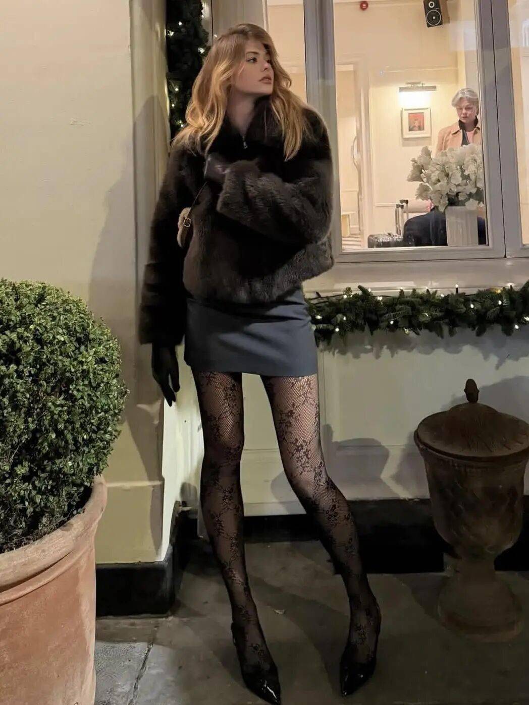 貴氣戰袍公式:長款皮草+修身內搭+硬挺下裝