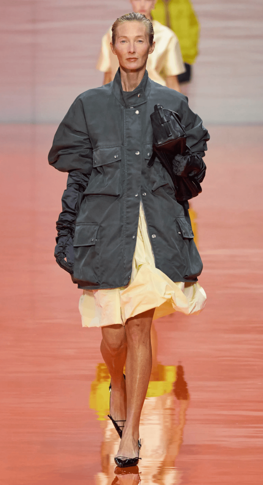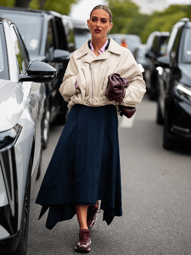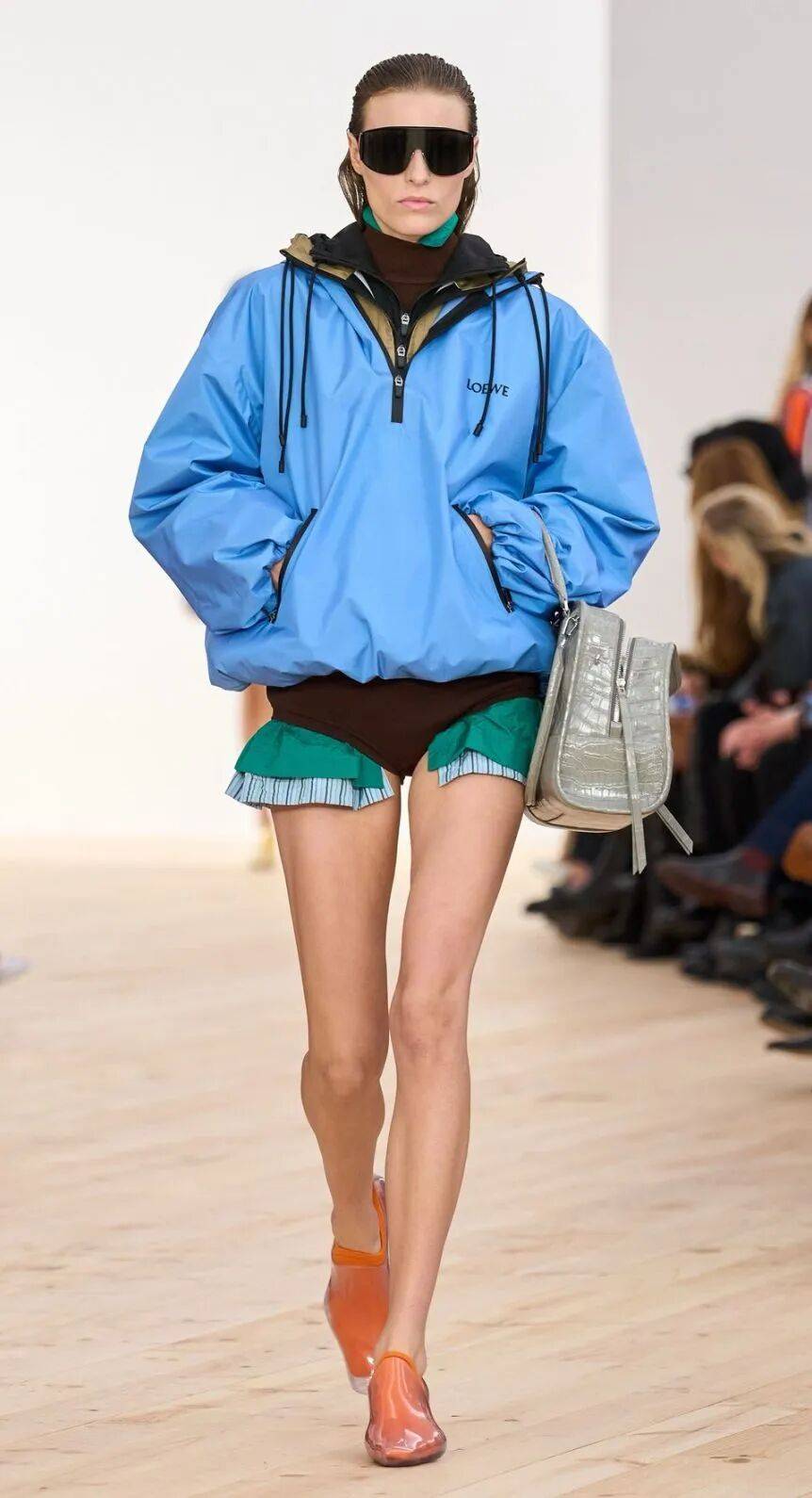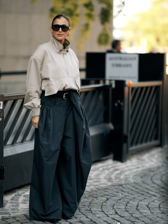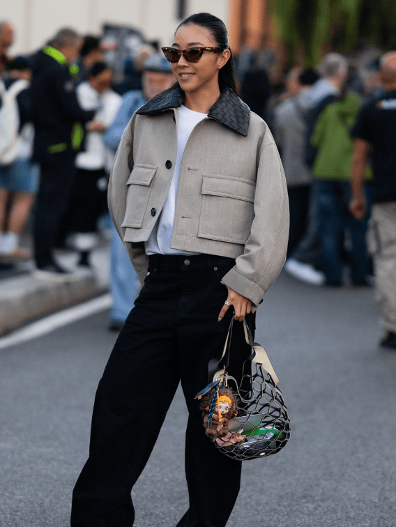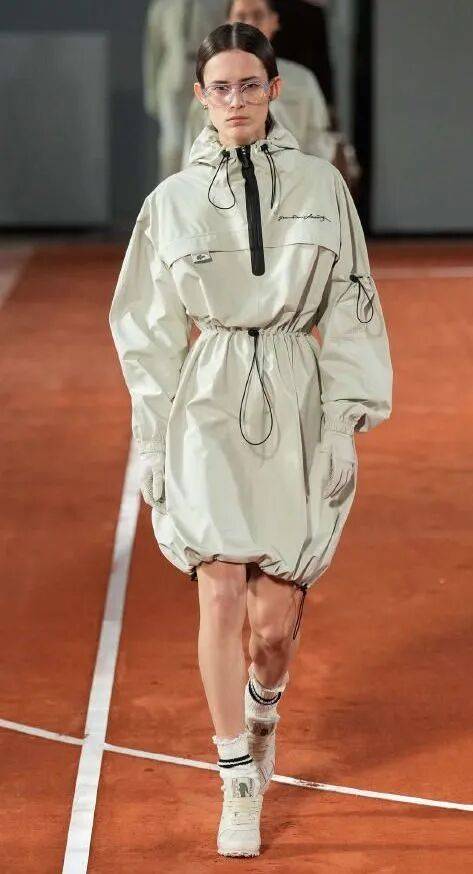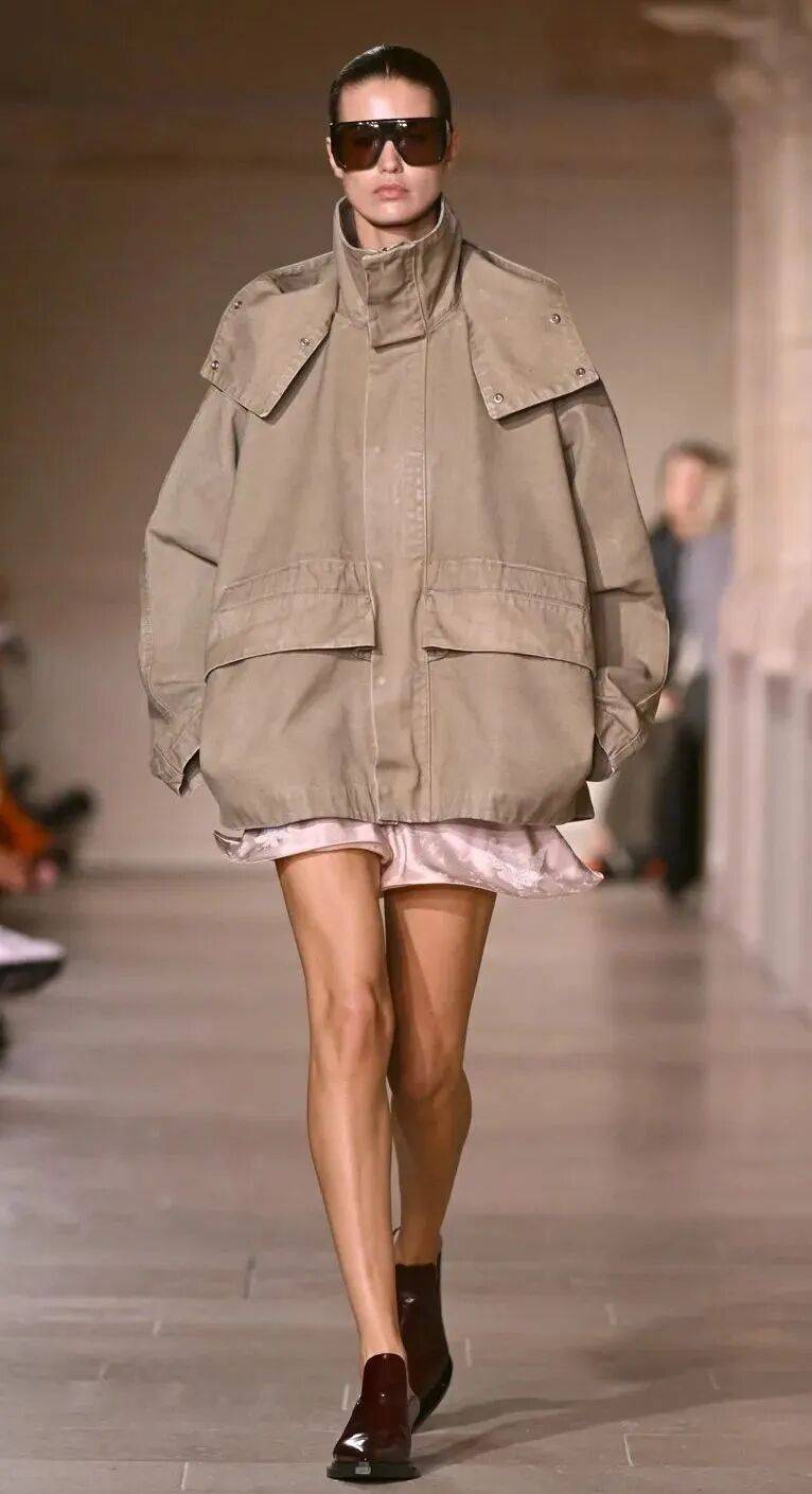 特殊麵料與抽繩融合,搭配闊腿褲或百褶裙,都能在工裝混搭風的視角裏,搭出減齡、輕鬆的氛圍。