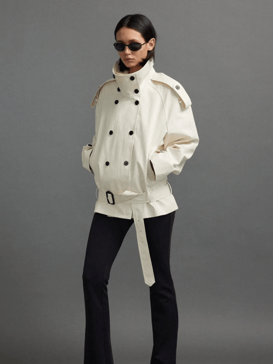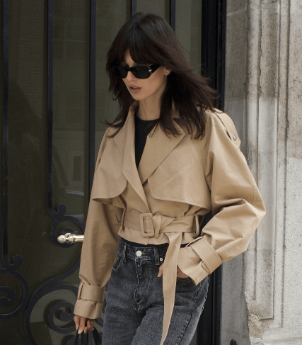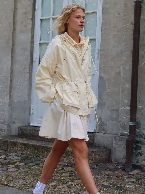 不少短風衣、中長款風衣,都會在腰間增加扣袢的連接。無論是低腰外套還是超短外套,都能瞬間為穿搭帶來亮點。