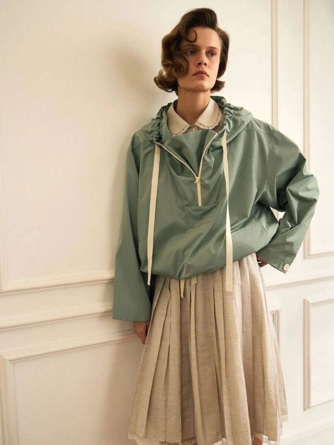 像這件領口抽繩外套,就顯得格外減齡、俏皮,很難不愛這樣的細節。