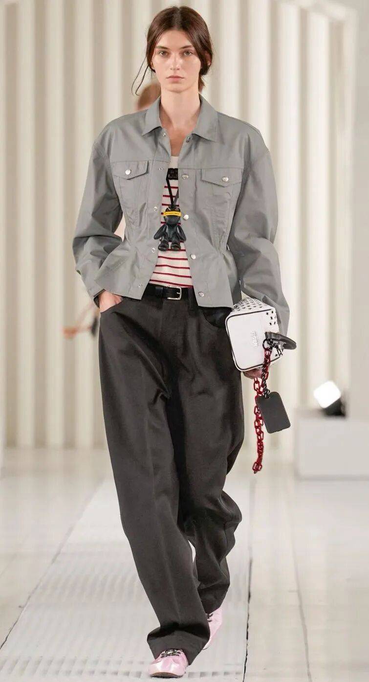 聚焦在夾克的扣袢,巧妙帶來腰部的視覺收緊,既增加了摩登氣息,又讓工裝風有了更豐富的想象。