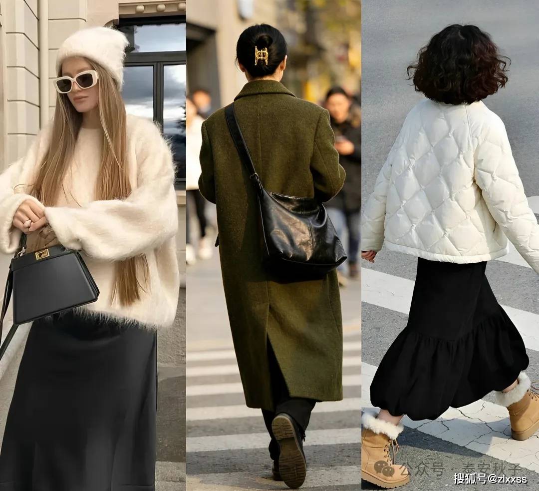 建議大家選羊絨,絲絨,毛呢等厚材質的大裙子來穿,這樣的材質,冬天穿起來保暖舒服,垂墜性也好,最適合40+女人。