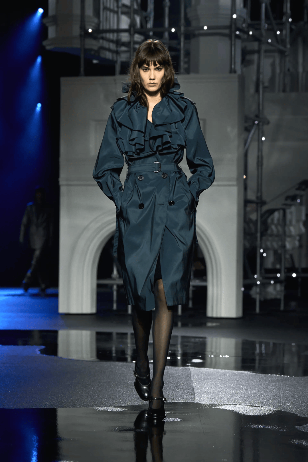 而本季最大的亮點,是優雅浪漫的荷葉邊風衣,衣領處做成層疊的狀態,增添獨特的女性氣質。