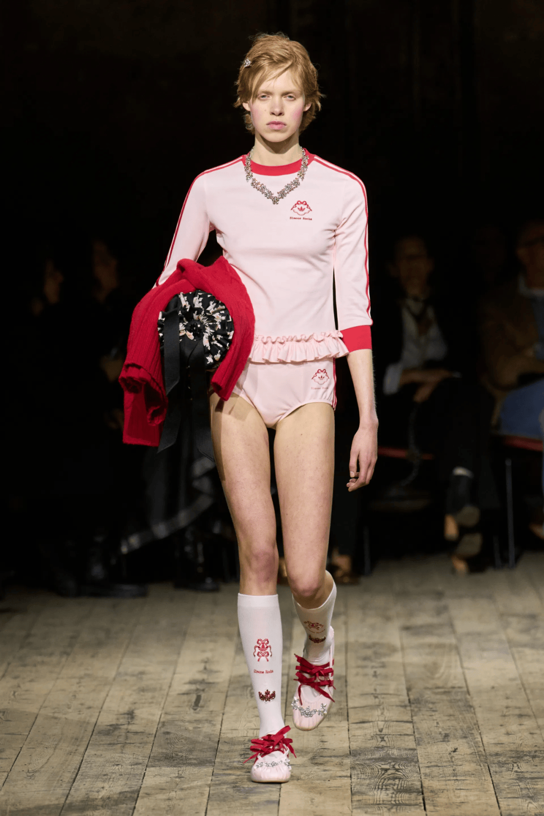 而整場大秀最亮眼的驚喜,是品牌與Adidas Originals的跨界聯名,讓Blokecore的隨性灑脫,也讓標誌性的少女美學,擁有了更隨性、更多元的表達可能。