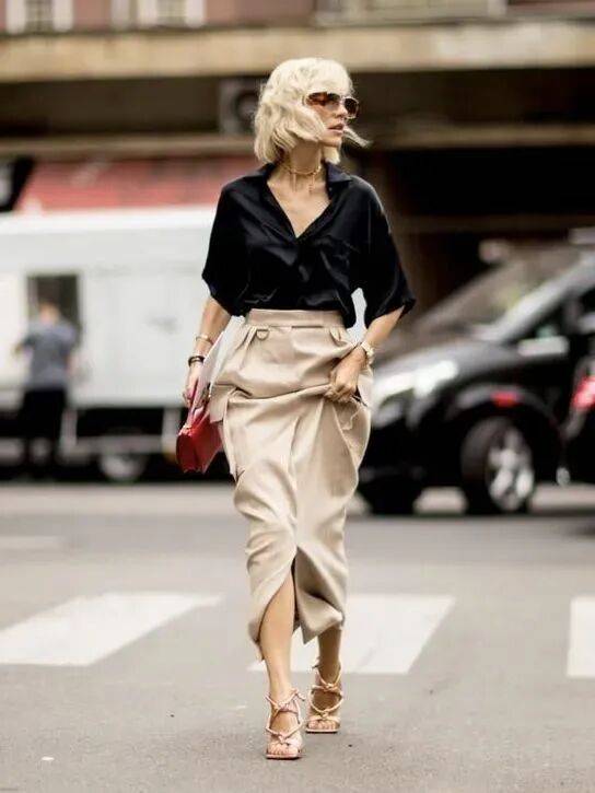 白色襯衫,有一種運籌帷幄的自信,還能增加你的大女人優雅氣質,搭配一件卡其色短半裙,讓你走起路來更加拉風,下角塞腰裏,讓你擁有自信果敢的姿態,輕易的展現瀟灑大女人形象