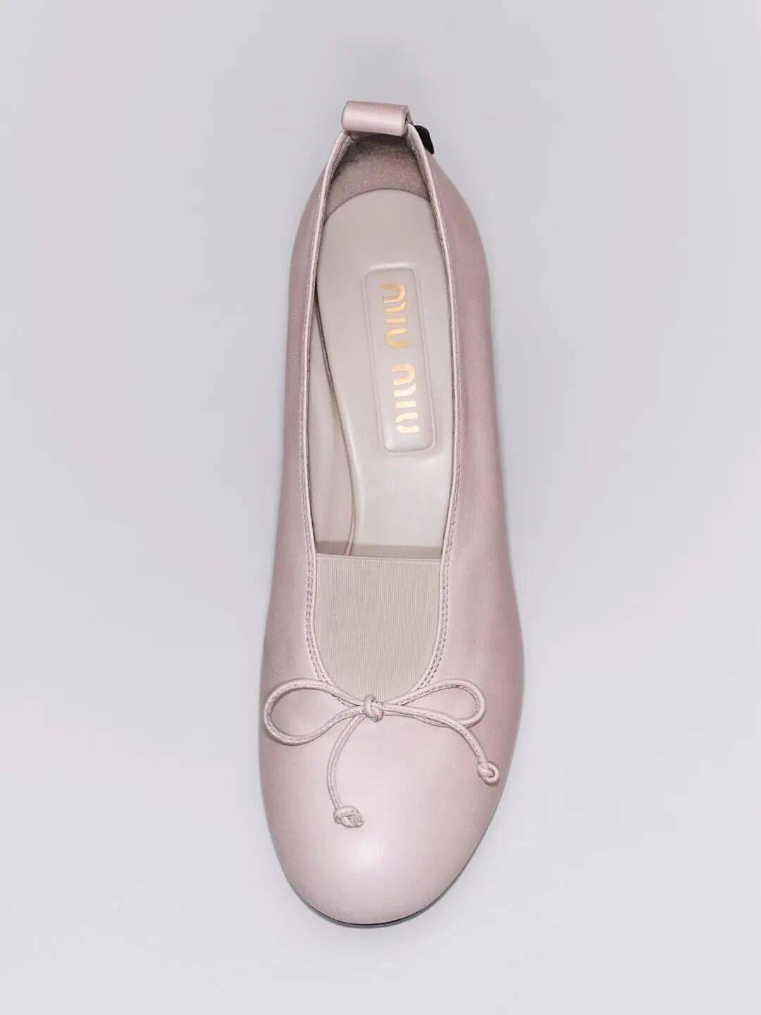 如果不想一次嚐試整身粉色,從鞋子開始往往是最簡單的方式。Miu Miu的芭蕾鞋延續品牌標誌性的少女氣質。柔和蘭花粉與簡潔鞋型結合,讓鞋履在優雅與日常之間保持輕盈平衡,搭配牛仔褲或連衣裙都很自然。