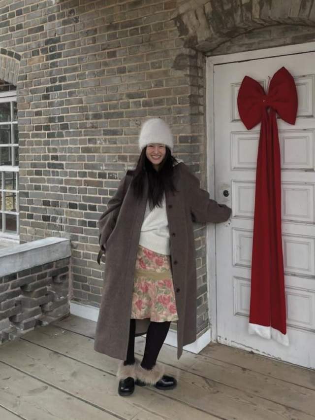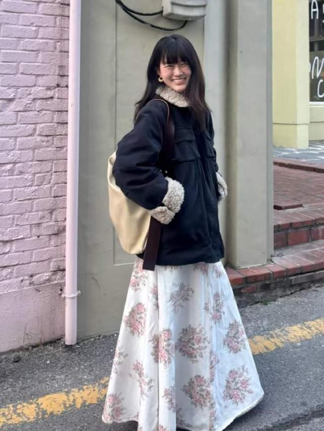 秋冬的穿搭很容易陷入單調,但 didyou_likeit 卻用豐富的色彩和材質,為我們展示了無限可能。她會用芥末黃的皮夾克搭配柔粉的緞麵半裙,再用一件綠色針織衫係在腰間,讓冷冽的街頭瞬間變得鮮活;也會用深咖色的長款大衣,內搭白底紅花的碎花裙,再配上一頂白色針織帽,在複古的基調中注入一絲清新。她的穿搭裏,毛絨、皮革、針織、緞麵等多種材質自由切換,既保留了秋冬的溫暖厚重,又不失輕盈靈動,讓我們看到,秋冬穿搭也可以像調色盤一樣,充滿無限的創意和可能。