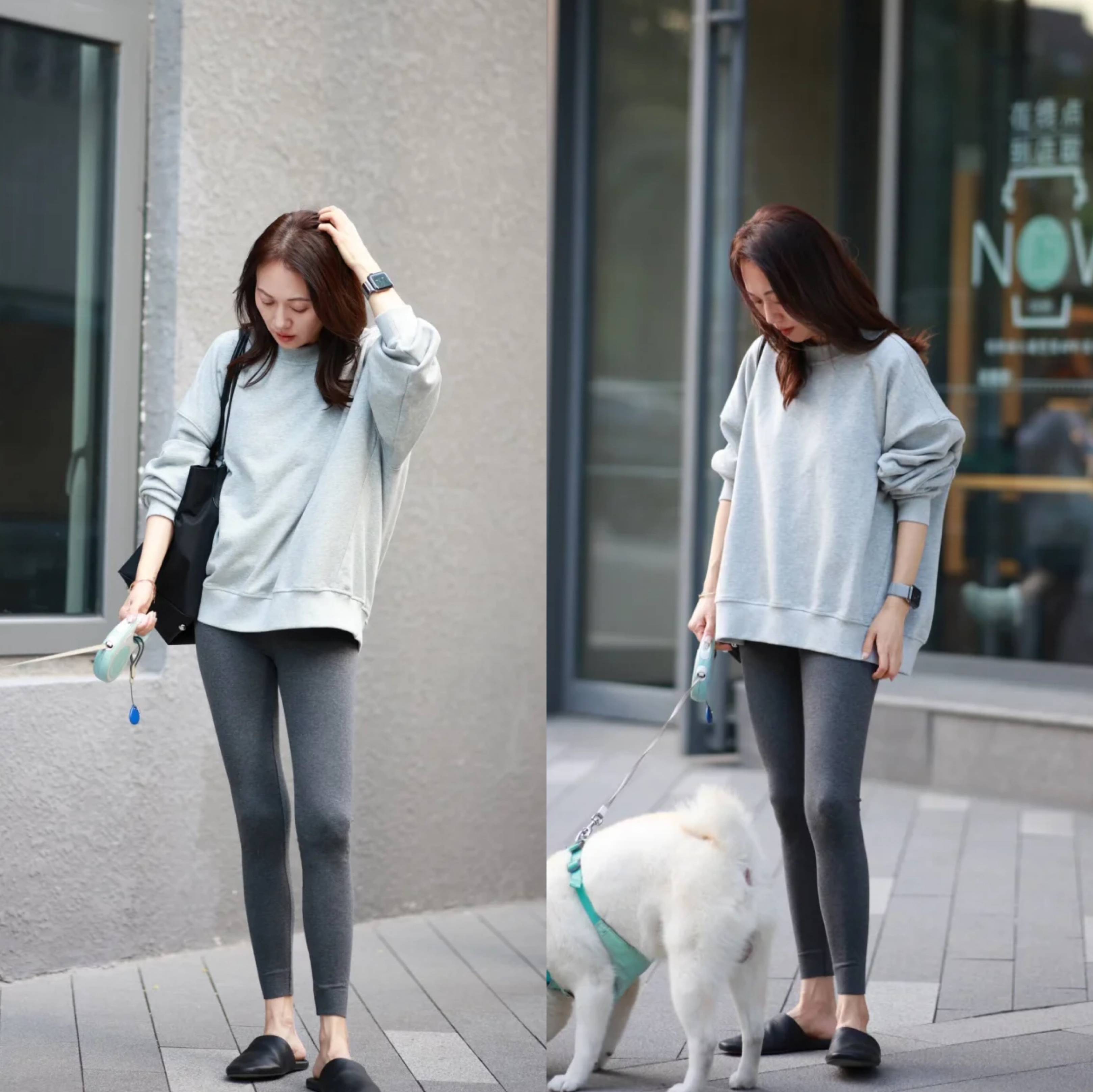 其實對於大齡女性來說,並不介意這種穿搭,當然,除非對於身材保持的非常好的人,畢竟瑜伽褲這種緊身的版型,是非常容易暴露腿部缺點的,所以隻能算是小眾穿搭,但不得不說,選擇oversizes風的衛衣+瑜伽褲,是真的超級顯瘦又顯腿長。