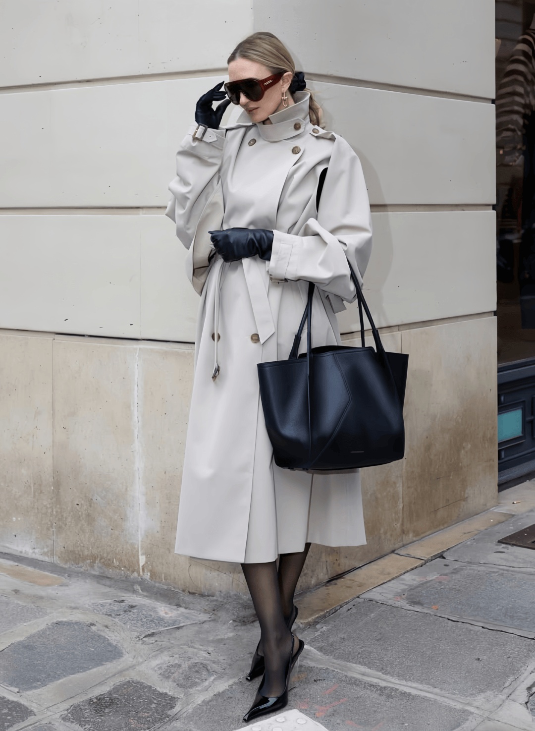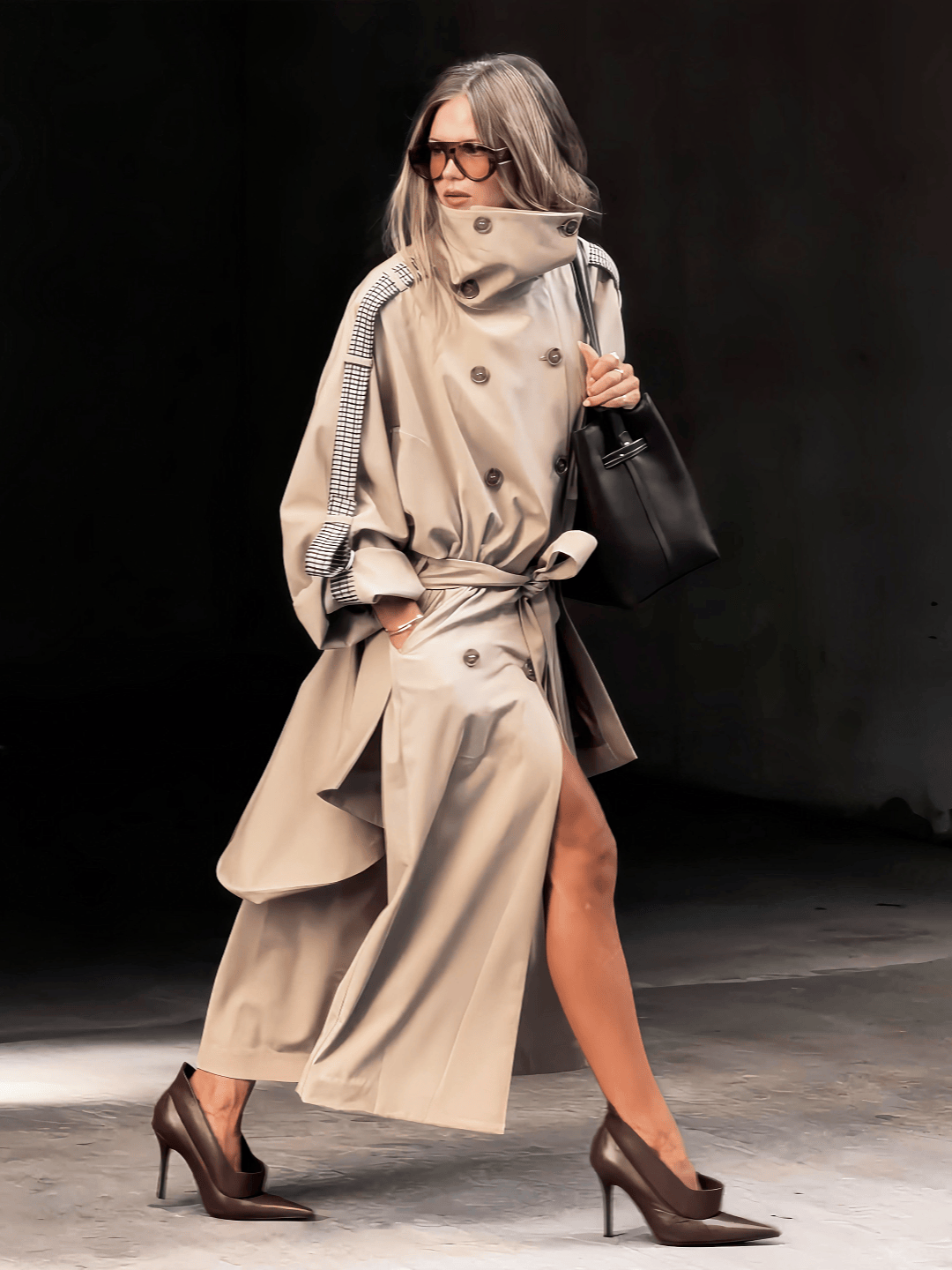 領型和係帶細節可以略有變化,但時下最經典好搭的一定是這種長款大廓型風衣。