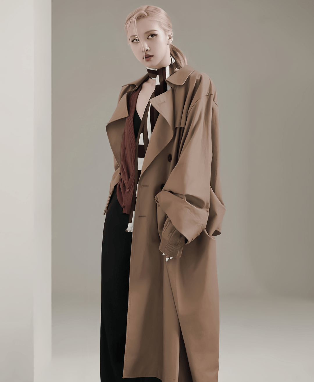 ROSÉ 剛剛登上韓版 《ELLE》 2 月刊的封麵造型,也穿了煙囪領風衣,說它統一了全球時尚 Icon 的審美也不為過。▼