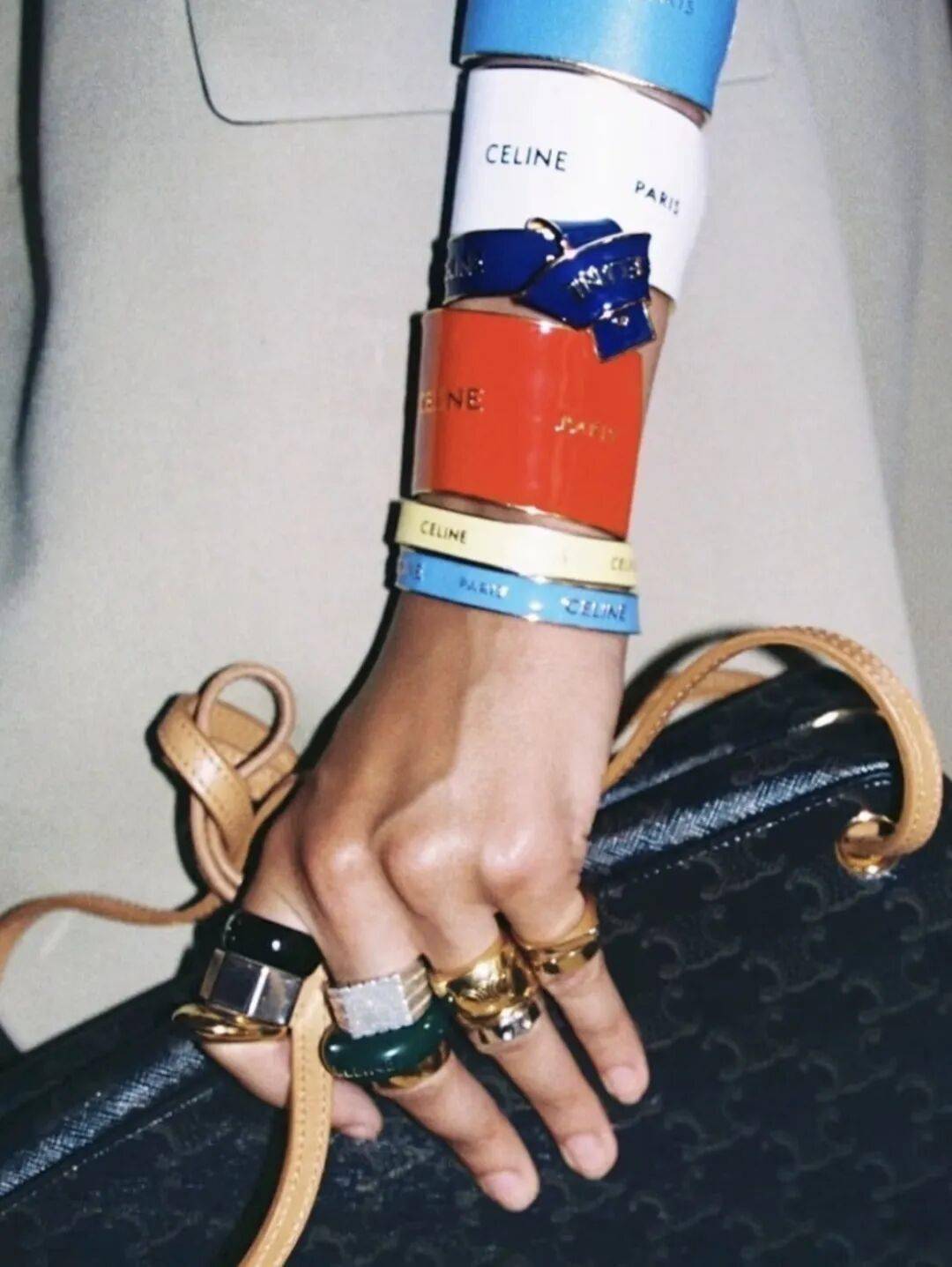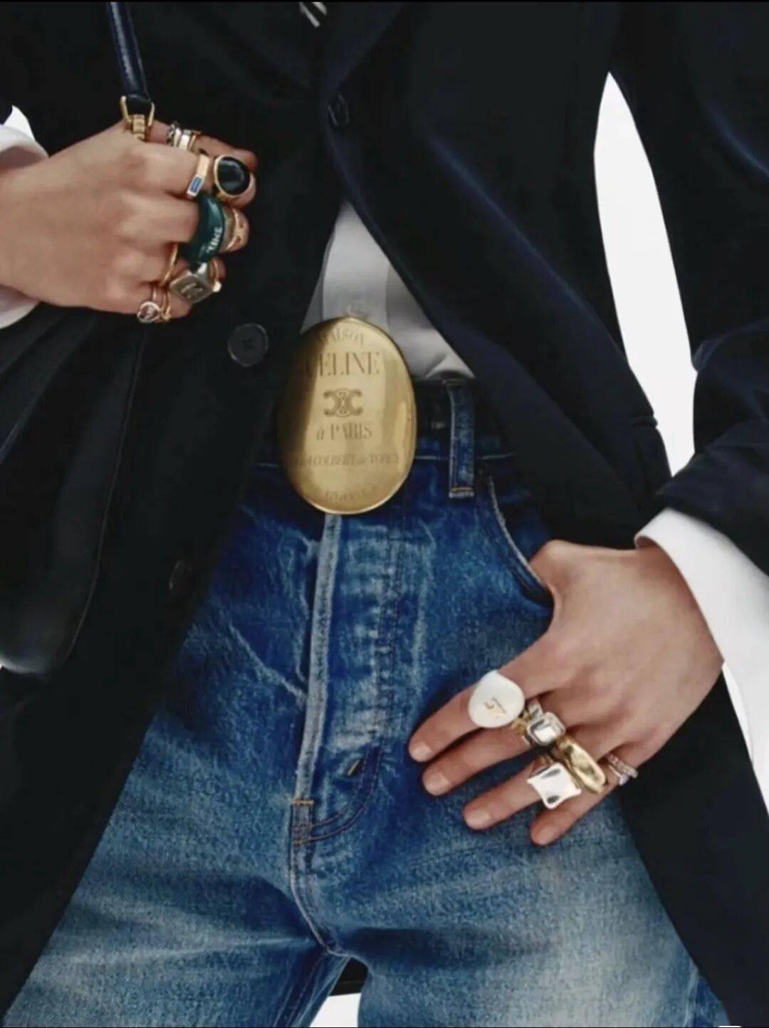 曾風靡一時的印章戒重磅回歸。在Celine的秀場上,模特們將其層層疊戴於多指,展現毫不掩飾的個性張揚。與此同時,銀飾以其不喧嘩卻富有質感的調性,正逐漸獲得更多青睞,恰好契合當下追求內在力量與低調精致的審美取向。