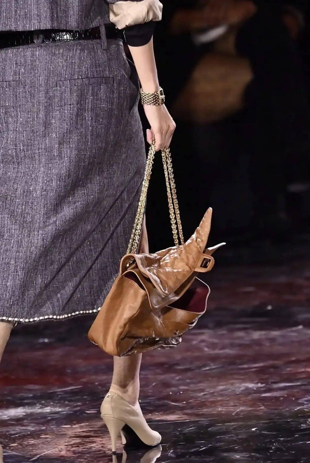 最引人注目的莫過於Chanel那款經過“揉皺”處理的2.55手袋。創意總監Matthieu Blazy讓原本棱角分明的經典變得柔軟、鬆弛,宛如剛從枕邊蘇醒。這種擁抱“不完美”的質感,反而為包袋注入了呼吸感與生命溫度。背上它,仿佛在無聲訴說:優雅,無需時刻緊繃。