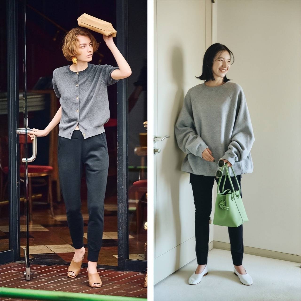 灰色運動褲搭配oversize夾克,打造都市感造型。通過內搭和涼鞋露出肌膚,為休閑穿搭增添恰到好處的利落感。