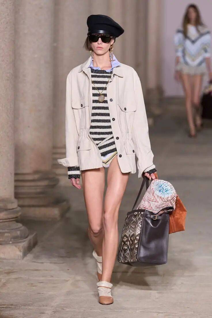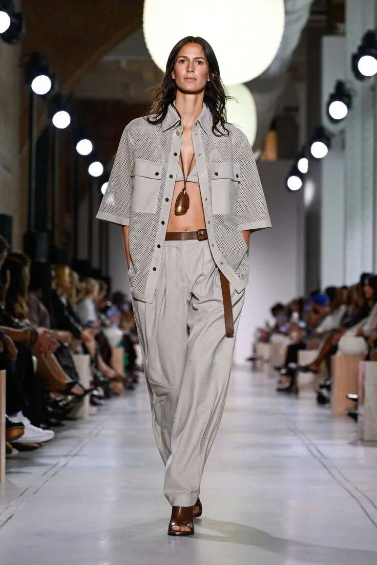 實用主義開始變得精致輕盈。工裝夾克和多口袋短褲保留功能性,但換上薄紗、輕質尼龍、透氣棉麻,貼合舒適。硬朗廓形與柔軟麵料結合,帥氣而飄逸。