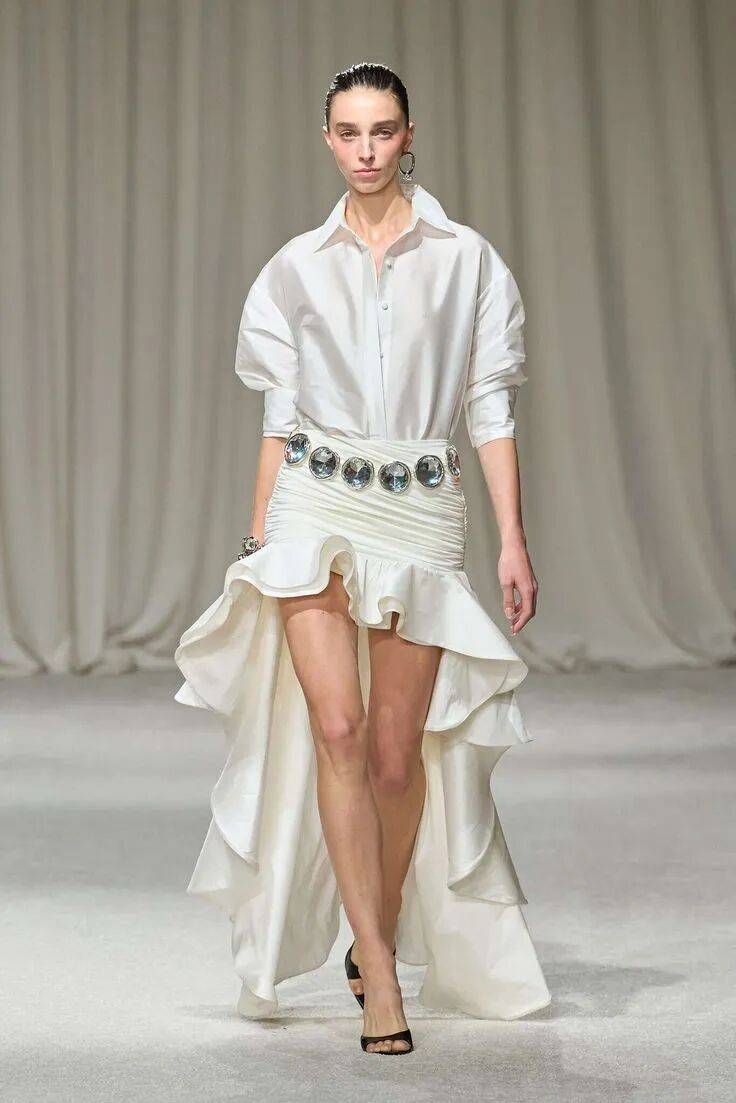本季,設計師們再次對經典女性體態進行創作,纖細腰身和豐滿臀部讓人想起二戰後Dior的“新風貌”。但如今展現的是解放而非束縛。Jonathan Anderson在Dior的首秀中致敬了這一風格,並賦予其輕盈之感。
