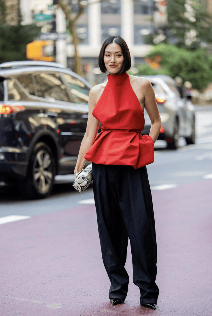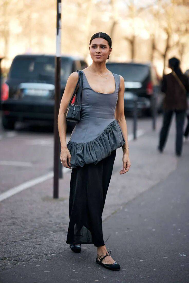 日常建議選擇收腰但不緊繃的廓形上衣,腰線位置應剛好落在自然腰最細處,下擺自然散開。麵料選有筋骨但不硬的版本,既能能看到清晰輪廓,行走之間也不會產生束縛感。