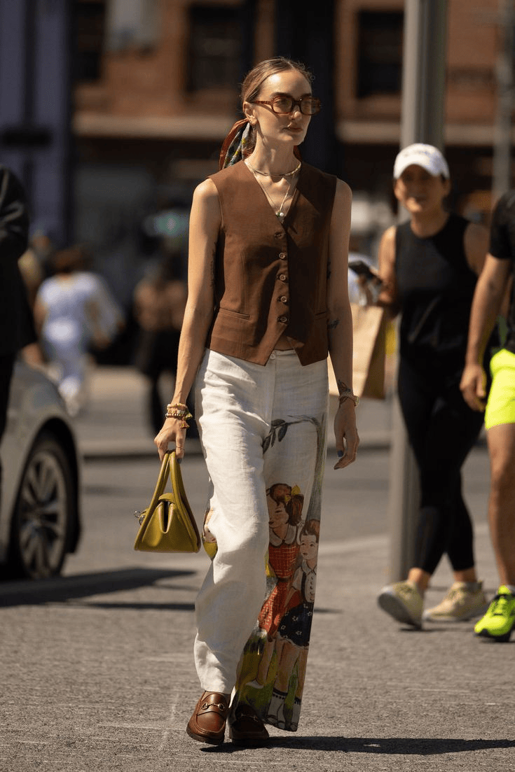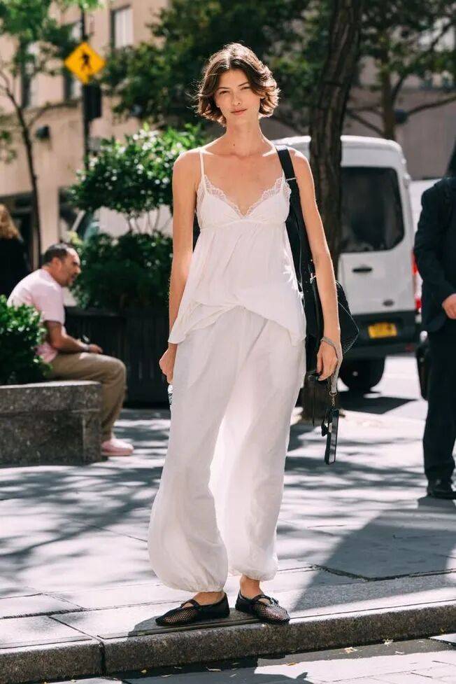 白色係在夏天尤其適合。日常穿一身白,靠麵料差異分出層次——棉麻配針織,亞麻配皮質,有對比才不單調。