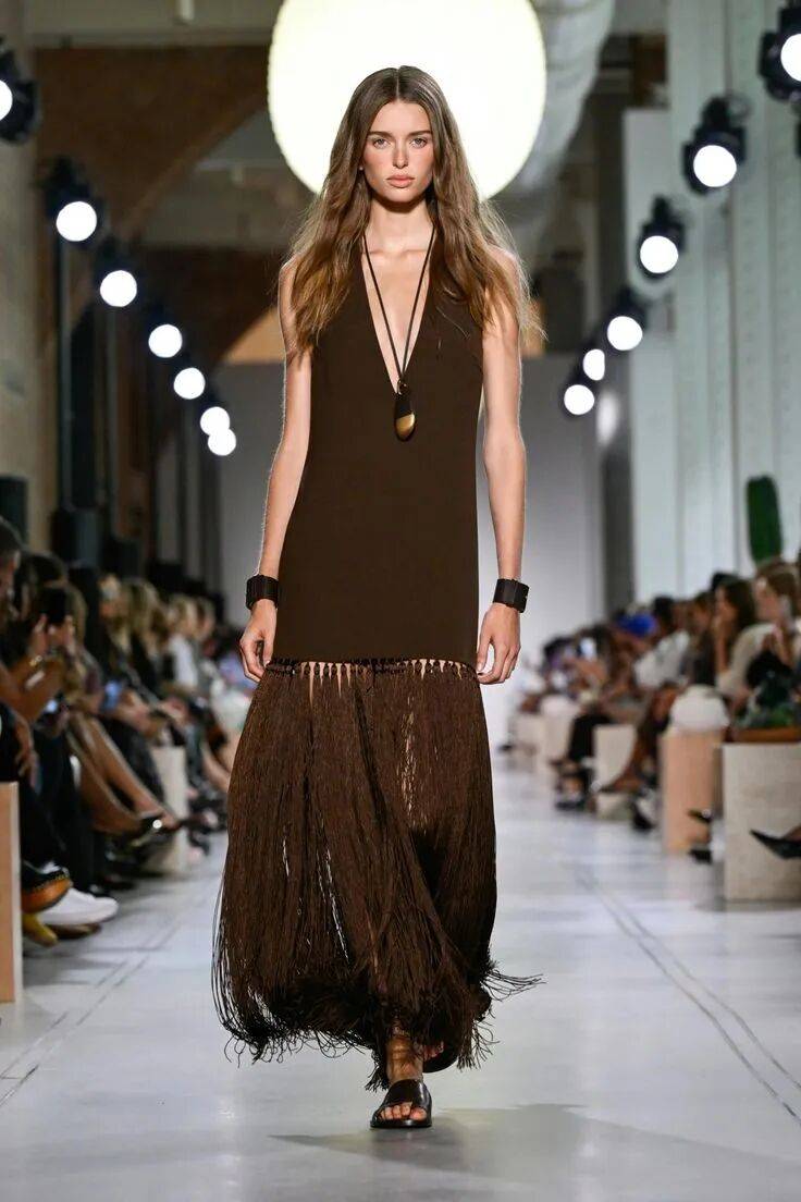 流蘇裙需注意流蘇的密度,太密顯得笨重,太疏又缺乏搖曳感,中等密度剛好呈現動態美感又不顯累贅。