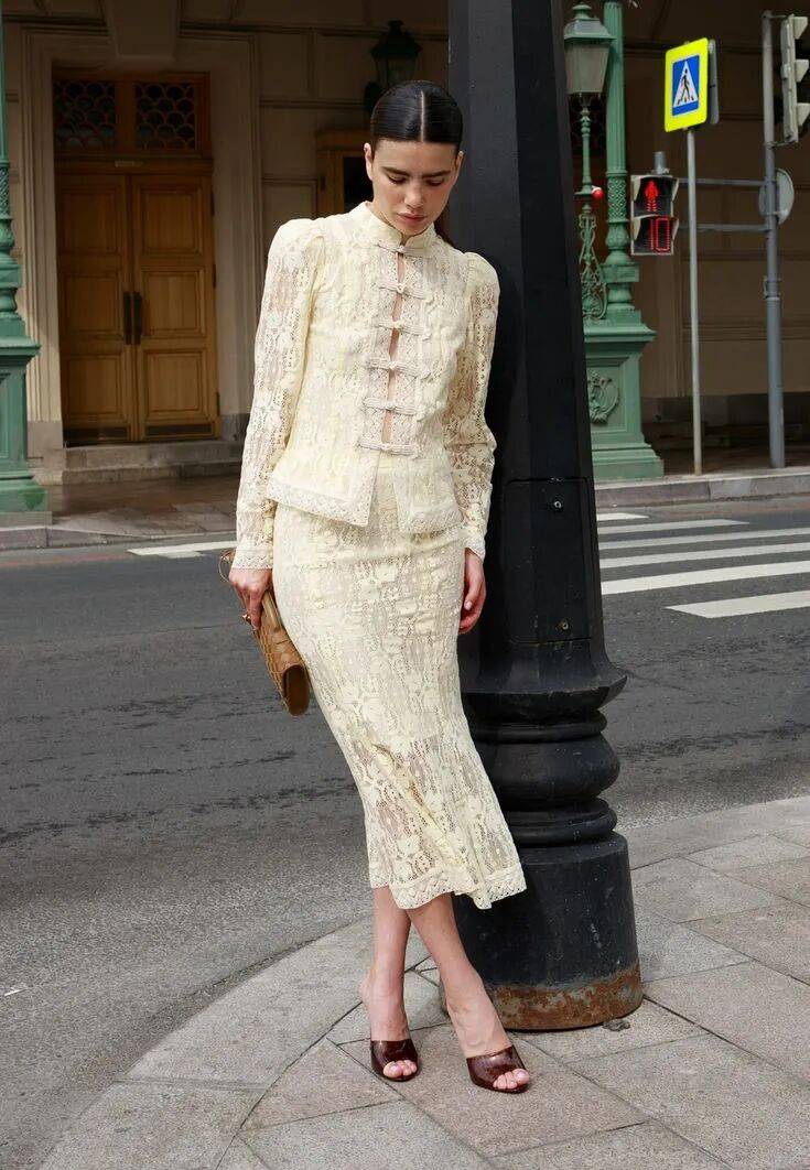 日常選擇一件真絲拚接蕾絲的單品,是最容易趕上這股潮流的方式,真絲建議16姆米以上,垂墜感佳且不輕飄;蕾絲選軟而不塌、花紋清晰且立體的麵料,總之少買精買就對了。