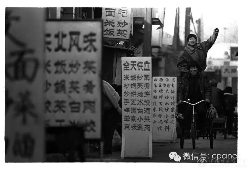 1993年,小平南巡講話發表後第二年,廊坊三條,胡同兩側雨後春筍般出現的個體餐飲中間,是一輛“開往春天”的三輪車。 圖:鄧維