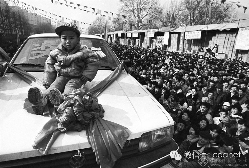 1997年,四川民工武富貞家3歲孩子手氣相當好,在地壇廟會當場抽中一輛桑塔納。上世紀九十年代,街頭彩票抽獎活動是人們過年的一大樂事兒。圖:胡金喜