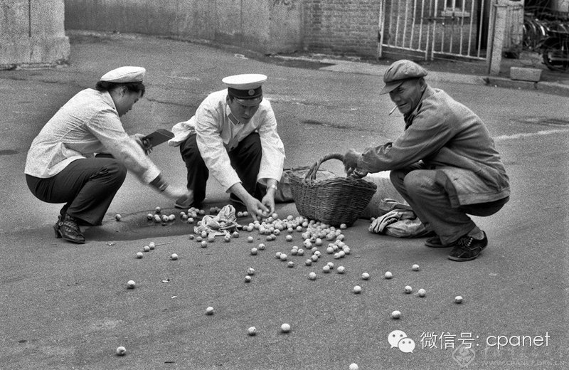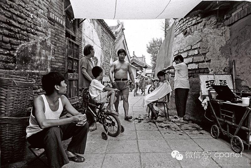 80年代中期,白塔寺西夾道口裏的市井風情:跨欄背心、剃頭挑子、竹籃車、膀爺……圖:於誌新