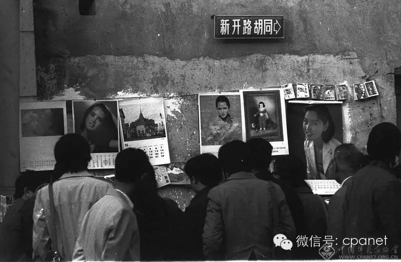 1986年,胡同口兒掛曆攤兒。當時,掛曆是很搶手的年貨圖:王文揚