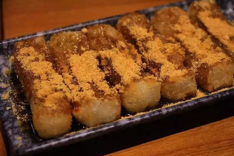 這家店裏,很有名的小吃還有紅糖糍粑。紅糖糍粑,是成都過年時,讓人流口水的小吃。記得小時候,每年春節來臨前,全院家家戶戶,抬出一個小石磨,家家泡了糯米,用石磨推糯米。我和小夥伴們總是約好一起磨糯米,這樣就可以邊磨邊聊天。有時,七八台小石磨並列在一起,七八台磨子裏,流出白白的米漿,像一排排的小瀑布,煞是好看,煞是壯觀。磨子出漿的一端,用布口袋紮好,磨好的米漿吊起來,瀝幹水分,最後曬成糯米粉。煮湯圓時拿出來搓成湯圓,包進芝麻心子就可以煮著吃;在火上煎一下便成糍粑,黃豆炒熟後磨成粉,煎好的糍粑,在黃豆粉裏一滾,再蘸白糖或紅糖,就成了又香又甜的紅糖糍粑了。