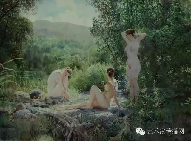 西方大多數著名油畫家同時也創作了很多優秀的水彩畫作品。我喜歡佐恩、惠斯勒、列賓、蘇裏科夫、謝洛夫、覆魯貝爾、薩金特、透納、康斯太勃爾,還有美國的懷斯,既透明又厚重。我的水彩《兒時的歌》亦是先有油畫稿,然後畫成水彩。