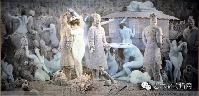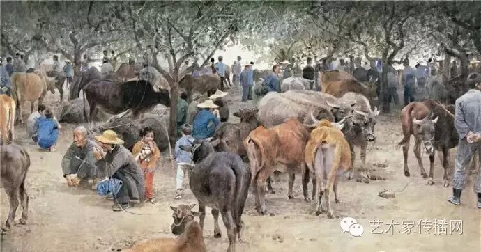 創作眾多人物的畫麵時,在調子的處理上應加強統一,要特別注意光影的掌握,光影的聚散要服從主題的表現;人物要分組,投影所在之處理所形成的節奏很重要。