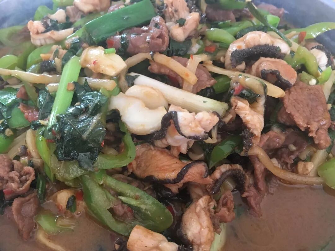 但小伍點的雞蛋炒苦瓜、風味牛雜、酸筍炒紅薯葉卻甚合我意。