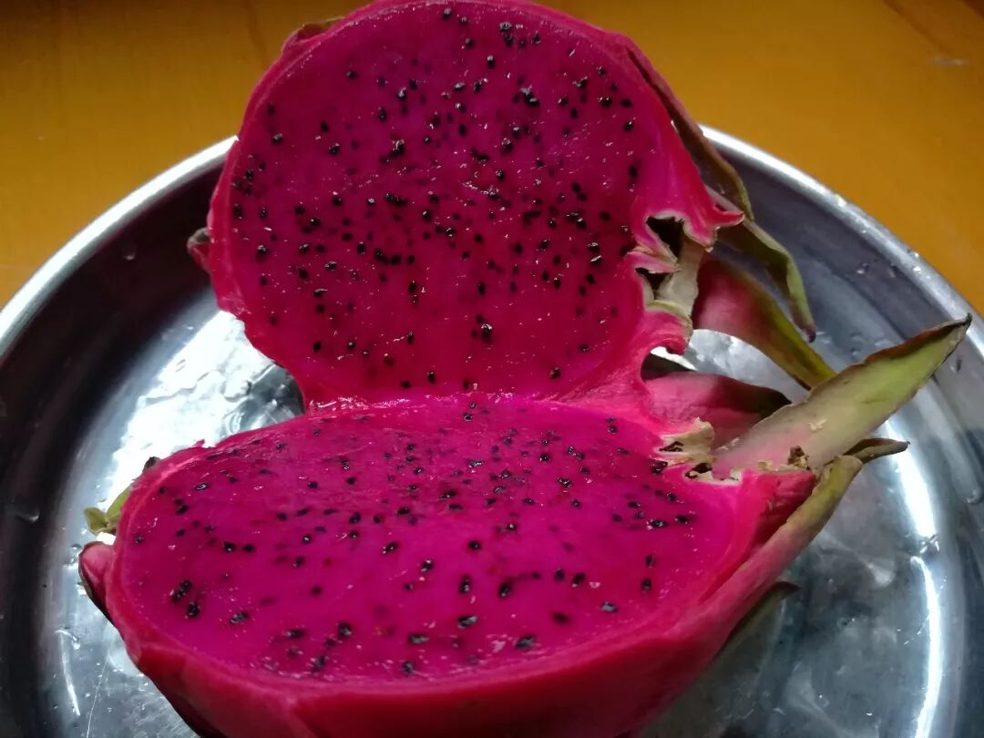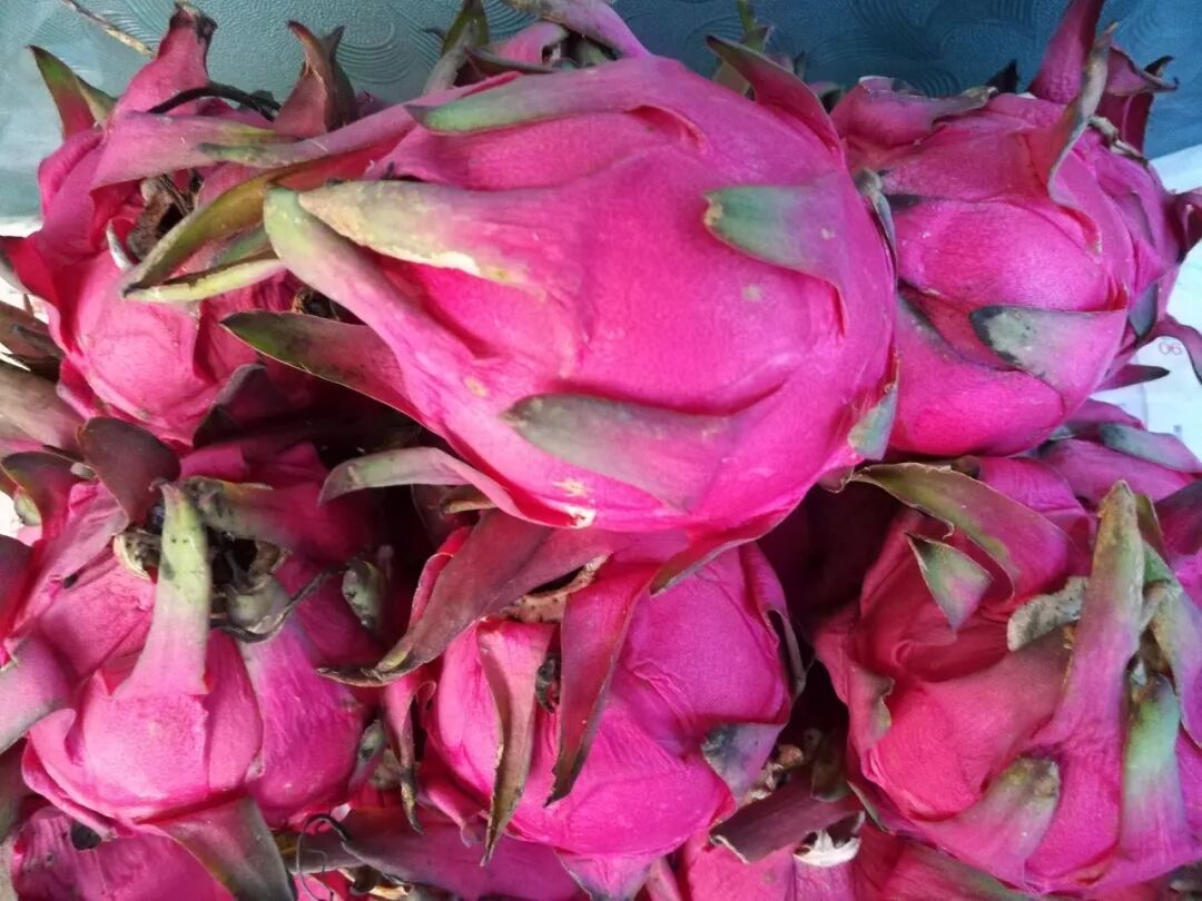 對,就是這種紅的像一團火一樣的果,這種國外引進的熱帶水果特別適合在右江河穀生長,年年產量創新高,收獲季到來之時,滿街紅彤彤一片。