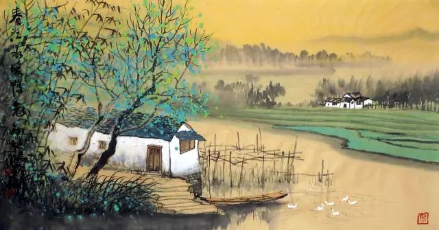 西塞山前白鷺飛,桃花流水鱖魚肥。青箬笠,綠蓑衣,斜風細雨不須歸。