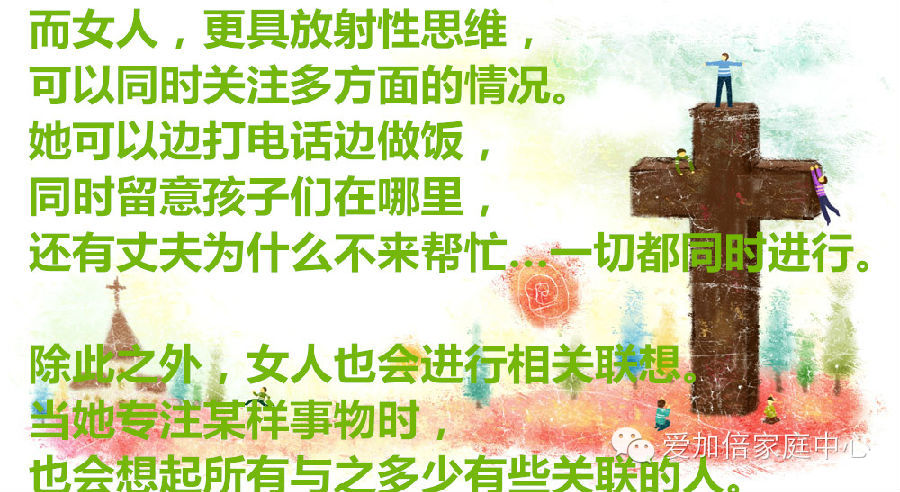 這些傾向都說明上帝如何製造女人來完善她們的男人。就像上帝在造物之初說的那樣:“那人獨居不好,我要為他造一個伴侶幫助人。”(創世記2:18)但這些差別也製造出很多誤解。