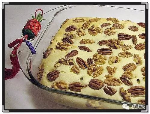抖動幾下或者靜置幾分鍾,再撒上核桃或別的幹果:
