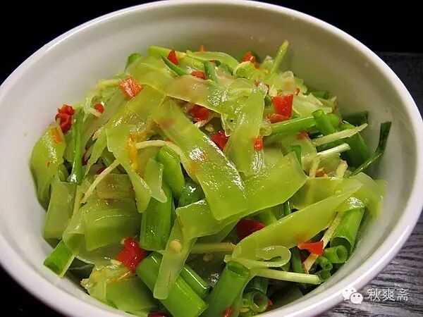 看著剩下的湯汁,正好朋友送來兩根她家種的萵苣,就用點鹽醃了幾分鍾後加進去了: