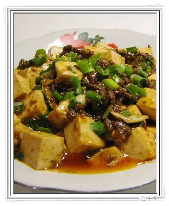 這樣可以保持豆腐形狀的完整。用鍋鏟輕輕翻動一兩次,煮到快幹的時候,可以勾點芡賣相更好,懶就算了~~~最後滴幾滴花椒油撒點蔥花兒起鍋,山寨非正宗版的麻婆豆腐就做好了:))