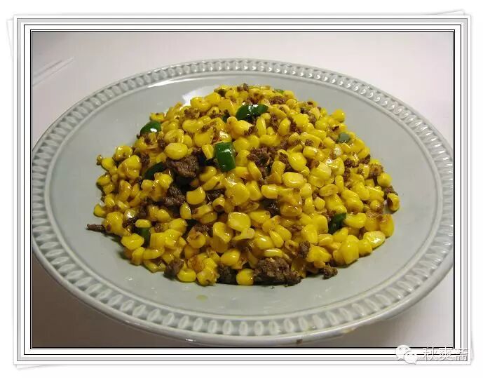 青椒肉末玉米:冰凍的玉米,如果出水多也可以用炒芹菜那招蒸發多餘的水分: