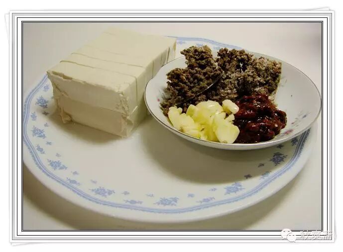 有這麽一碗在手,做麻婆豆腐就容易啦~~~這是材料:蒜的旁邊是辣豆瓣醬: