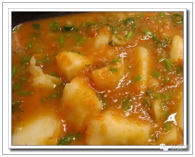先用點油煎軟茄丁,再加微波過的土豆和其它易熟的蔬菜,還有一大勺辣醬: